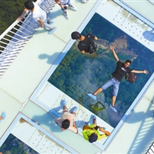 当天7时整,提前预约购票的中外游客在工作人员的指引下,经过验票、安检、穿鞋套等程序后,有序地登上桥面。蓝天之下、青山之间、峡谷之巅,玻璃桥像一条透明的飘带如梦似幻。站在桥面,低头俯视,万丈峡谷尽收眼底;举目远眺,绝壁瀑布相映成趣。如此壮观的场景,令前来体验观光的中外游客惊叹折服。