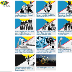 英国《卫报》制作了相关专题:从比赛每一秒分析奥运冠军是如何诞生的?涉及到了关于里约游泳、田径、体操、场地自行车等多个项目和里约奥运会闭幕式,共计11个数据可视化产品,这些生动的可视化新闻作品在《卫报》的官网和数据可视化团队的官方Twitter上,加上有趣的小游戏啊互动,吸引了众多眼球。