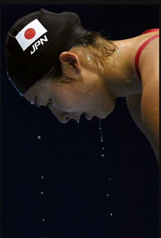 9.日本选手池江璃花子在女子100米蝶泳决赛中位列第6,图为其跃出泳池的画面。2016年8月7日,三浦博之摄于里约奥运游泳赛场。