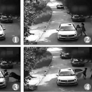 ◎15时00分32秒周某打开左后车门与刘某追至该平台坡下。