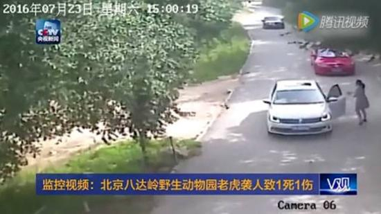 15时00分32秒,周某打开左后车门与刘某追至该平台坡下。15时00分33秒,标号为3号的巡逻车拉响警报冲上柏油路,对虎进行驱赶。同时用对讲机呼叫标号为8号的巡逻车进行支援。周某上至该平台,用右手拍击虎,被该平台其中一只虎咬到背部右侧。此时,距该平台西南侧约8米的第三只虎冲过来咬住周某左枕部并甩头,周某停止挣扎。