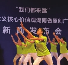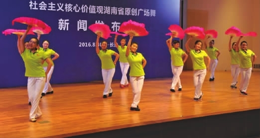 8月30日,省人民政府新闻办召开新闻发布会,发布20支“我们都来跳”社会主义核心价值观湖南省原创广场舞歌曲,这在全国尚属首次。