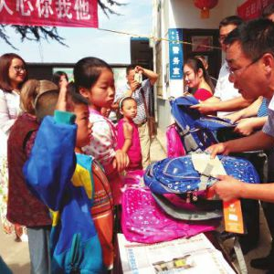 华商报讯(记者 宋秉琴)“呀,这书包真漂亮。”8月31日上午,宝鸡市渭滨区石鼓镇庙沟村村委会里,村里的13名贫困儿童领到了石鼓镇商会捐赠的书包和现金后,一女孩高兴地说。