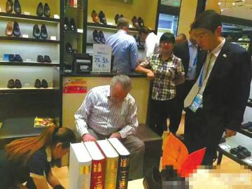 9月3日下午,杭州百货大楼三楼的男鞋专柜忽然热闹起来,专柜售货员邵婷看到一名外籍长者在几个人的陪同下来到自己的柜台前。