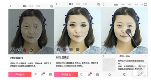 交互上,“I-MUA”将相貌数据与化妆师经验数据进行匹配,定制出小编的“时尚烟熏”妆容方案,划定出了最佳上妆区域,还能看到试妆效果。