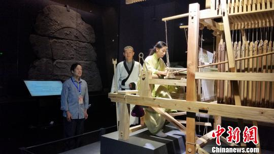 织工用复原后的提花织机,以汉代的技艺现场织造美丽的蜀锦。 周询 摄