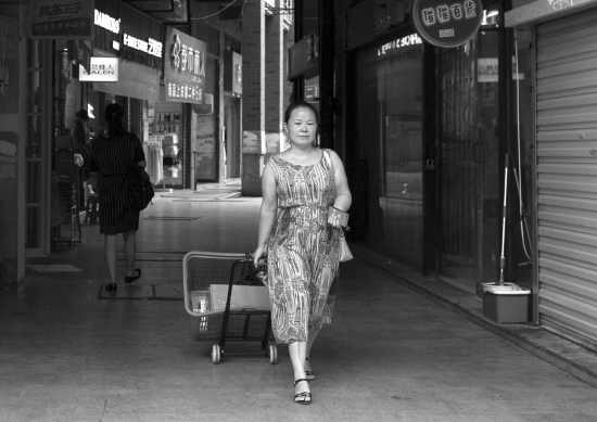 9月15日,中南林业科技大学附近,梁三青拖着拖车,正在派件。图/记者陈韵骄