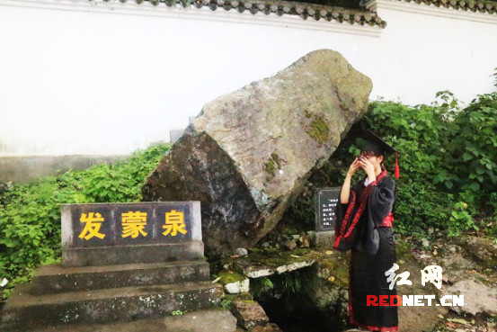 “上山之前要喝二酉山发蒙泉的泉水。”带队的老师跟学生们介绍,发蒙泉是当地百姓在山脚挖的一个正方形的浅井,承接泉水,方便游客饮用。传说,启蒙的孩子喝了发蒙泉的泉水后就会变得聪慧灵性。