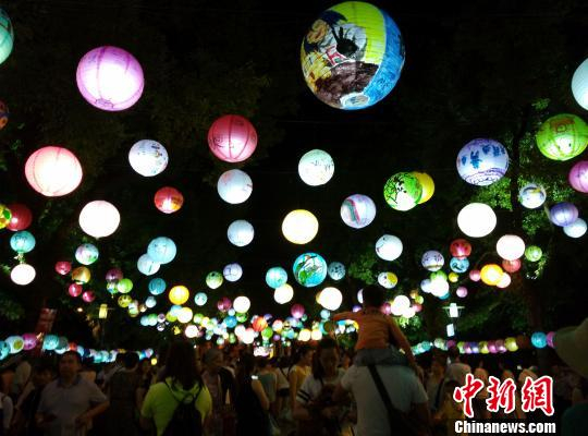 9月17日晚,游客市民在桂林两江四湖景区欣赏中秋花灯会“儿童手绘花灯展”。 欧惠兰 摄