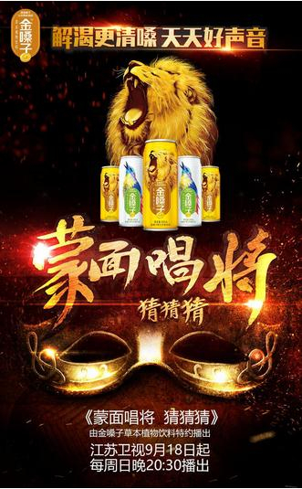 秋意正浓, 2016年新上市的金嗓子草本植物饮料又携全新版大型音乐综艺节目《蒙面唱将猜猜猜》清嗓来袭!该节目由江苏卫视与灿星制作联合推出,于9月18日晚8点30分震撼首播,必将在这个秋季掀动国内乐坛新高潮。从《盖世英雄》到《蒙面唱将猜猜猜》,连续两档音乐节目赞助,金嗓子草本植物饮料以一股势不可挡的音乐浪潮高调进入音乐综艺圈,更清嗓更音乐!