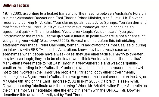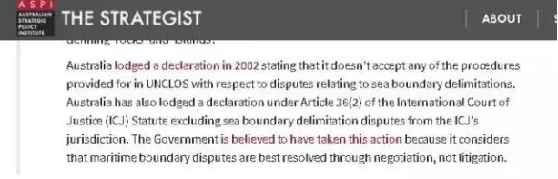 比如,贵国口口生生说尊重“国际法”,与东帝汶的争端应该通过“国际法”解决,可贵国却恰恰回避了我们在文章中揭露的你们于2002年东帝汶独立前夕突然退出联合国海洋法公约(UNCLOS)以及国际法庭(ICJ)所有关于海洋划界问题的强制仲裁程序的事情。