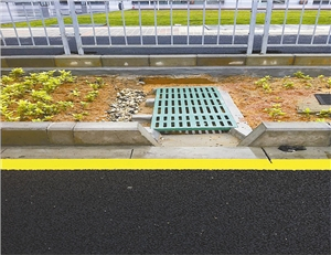 光明新区三十八号路植生滞留槽进水口。