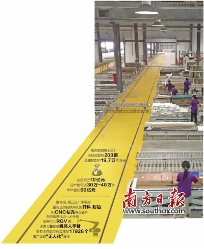 南方日报讯 (记者/李慧君 通讯员/黄清华)20日,在佛山维尚家具制造有限公司第五分厂正式开业之际,维尚家具智能制造试点示范(全屋家居大规模个性化定制)项目正式启动。该项目在今年6月份入选“2016年智能制造试点示范项目”,是佛山唯一一家入选企业,也是全国家具行业唯一入选企业。