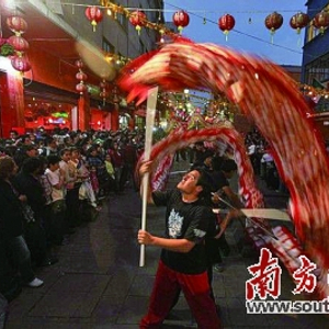 墨西哥城唐人街,人们舞龙庆祝春节。资料图片