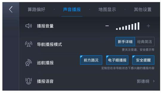 在导航过程中,高德地图车机版就可以进行多类别、多方面的道路信息播报。首先,在设置页面中,高德地图车机版可以让让车主选择新手详细播报还是经典简洁播报模式,在新手详细播报模式中,包括行驶方向、是否重新规划路线躲避拥堵在内的多类道路信息,高德地图车机版都可以准确播报,而前方路况、电子眼位置,拥堵的详细长度、道路安全、通过时间等详细信息也能够通过语音传达给驾驶员。