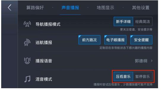 此外,高德地图车机版还能在有特点、易识别、熟悉度高的路口进行自然语音播报,比如“前方两百米,大熊猫路口右转”,非常亲切、自然,让车主不会错过路口。同时高德地图车机版还拥有“压低音乐”与“暂停音乐”两种混音模式,让车机在播放导航语音时,能够自动调低音乐音量或自动暂停音乐,待导航语音播放完毕后再恢复。这样,当司机在一边听音乐一边导航的时候,也不用担心听不见语音播报,行车更安全。