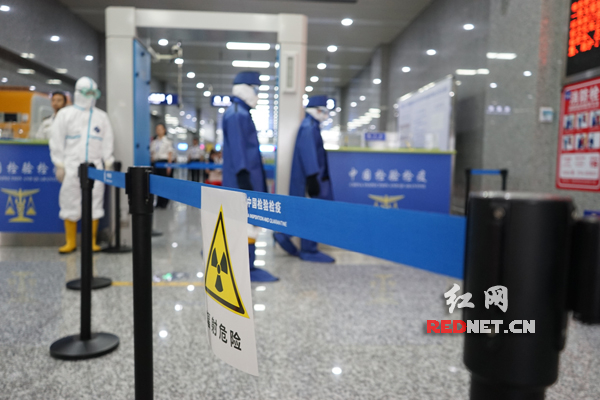 演练模拟9月23日上午9点,来自A国的1023次航班抵达张家界荷花国际机场,入境旅客正在通过旅检通道时,通道式核与辐射监测系统发生报警。经过检查,是一名旅客随身携带的行李中夹带有放射性物质。