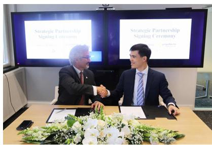 HOF UK董事长Frank Slevin(左)与普罗派乐卫视董事长叶臻臻(右)签署战略合作备忘录