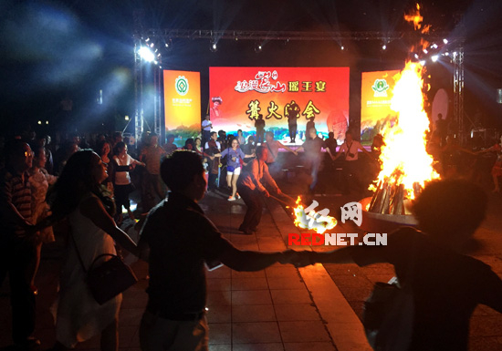 饭后燃烧起来的熊熊篝火,更是吸引着记者们和瑶家阿哥阿妹们一起手牵手,围着篝火跳起了摇摇舞、载歌载舞……