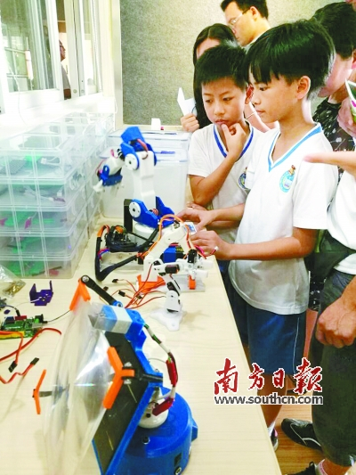 在中山,越来越多的学校在试水创客教育。据上述教体局相关负责人介绍,目前,全市已有10多所学校在开展相关的探索,除石岐中心小学、实验小学外,东区6所公办小学,小榄镇升平小学、广源小学等均有建设实验室,并开设相关的课程,进行相关的课题研究。
