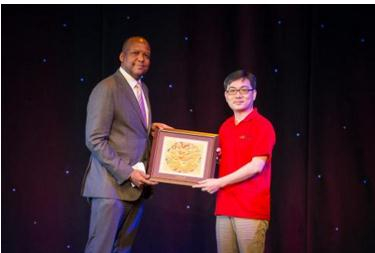 在环球影城,洛杉矶旅游局局长亲自出席晚宴,慰问现场所有的中脉科技贵宾,他对中脉科技贵宾们的极具组织性和高素质表现给出了高度评价,并预祝中脉科技贵宾们在洛杉矶收获开心快乐的旅程。同时,他还向中脉科技中国区业务总裁吴均琪互赠礼物,并和其他公司高管一起向在场的中脉科技贵宾祝酒,似有一种举杯邀明月,对影成三人的气势!