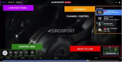 UI 逻辑部分包含的功能较多,我们不一一详细介绍,直接以 Eurosport 播放器的 UI 来作为例子直观感受一下这些功能。