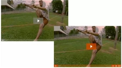 皮肤是对播放器视觉相关部分的统称:进度控制条、按钮和动画图标等等,如图 2 所示。和大部分设计类的组件一样,这部分组件也是使用 CSS 来实现的,设计师或者开发者可以很方便的拿来集成(即便你使用的是 JW Player 和 Bitdash 这种整套解决方案)。