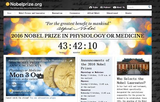 据诺贝尔奖官网消息,2016年诺贝尔奖各个奖项将于10月3日起陆续揭晓。