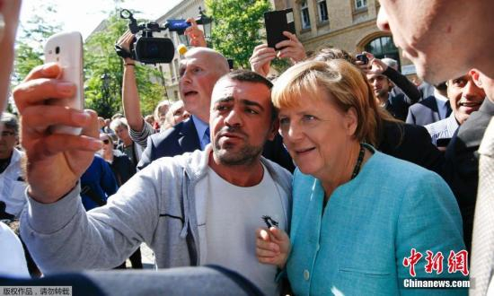 当地时间2015年9月10日,德国柏林,德国总理默克尔慰问抵达德国寻求避难的难民。