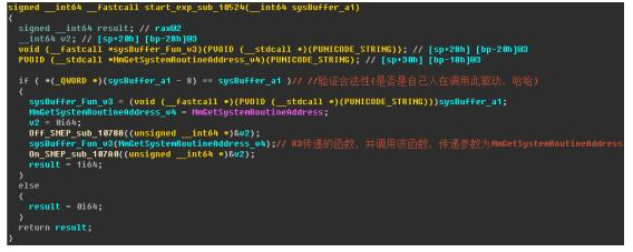 在这里有一个非常关键的地方,条件判断的第一句话,这里猜想是Capcom为了防止此驱动滥用而设置的暗桩。所以我们构造shellcode的时候需要特别注意。