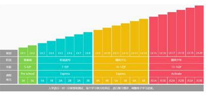 目前,DaDaABC平台上的课程主要包括主修课和辅修课(也称兴趣课)—— 主修课针对5-6岁(零基础)、7-9岁(听说读写)、10-12岁(精英少儿)、13-16岁(精英少年)四个不同年龄段的孩子,分成了20个级别,根据一对一测评结果,按目前孩子级别进行授课。一对一和小班(最多四人)均有,而且采取固定外教、固定上课时间的模式。