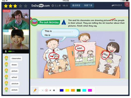 (DaDaABC自主研发的双向视频上课系统–iPad端)
