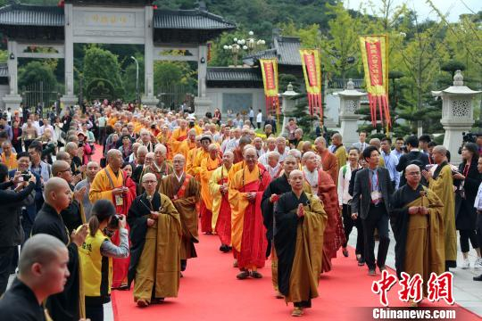 中新网宁波10月12日电(记者 林波)“惟以心相交,方成其长远”。10月12日,第十九次中韩日佛教友好交流会议在浙江省宁波市雪窦山开幕。国家宗教事务局局长王作安表示,中韩日三国不仅山水相连,而且法乳一脉,“正是中韩日三国古德先贤不远万里,西行东渡,互相交流,共同煅造了一条熠熠生辉的佛教‘黄金纽带’,记录、见证并传承着中韩日三国佛教徒之间的法谊、人民之间的友谊。”