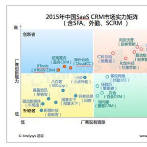 易观分析认为,中国SaaS CRM市场竞争激烈,市场呈现出新老厂商同台竞争的局面,云计算、大数据、移动管理和移动社交等新技术及应用场景推动了SaaS CRM市场的发展,现有厂商之间的竞争更多体现在产品服务与资源的竞争。而用户现状、基础设施规模、资本实力、品牌与声望、生态模式则是评价厂商现有资源能力的重要指标。