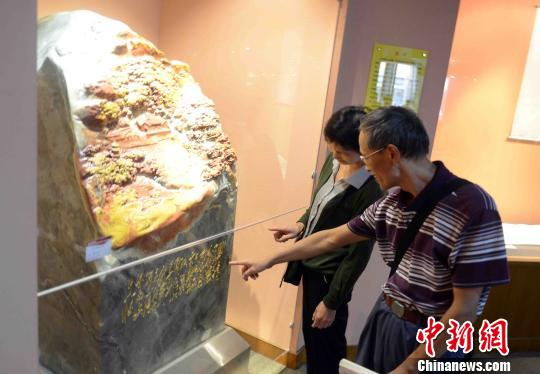 大型寿山石雕作品《古田会议会址》吸引众多市民驻足观看。 记者刘可耕 摄
