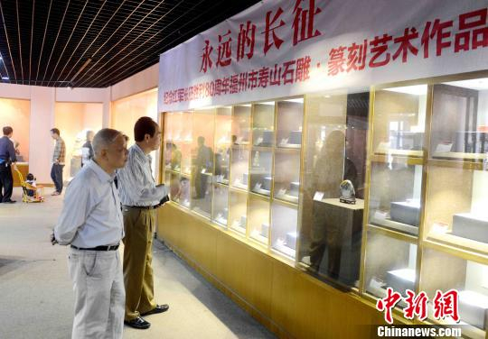 10月13日,纪念红军长征胜利80周年福州市寿山石雕·篆刻艺术作品展在福州三坊七巷雕刻艺术馆启幕。 记者刘可耕 摄