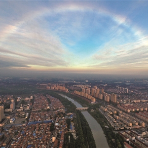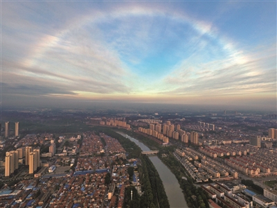 昨日,淮安雨过天晴,古淮河畔城市上空出现了难得一见的彩虹,蔚为壮观。 贺敬华 摄 视觉江苏网供图
