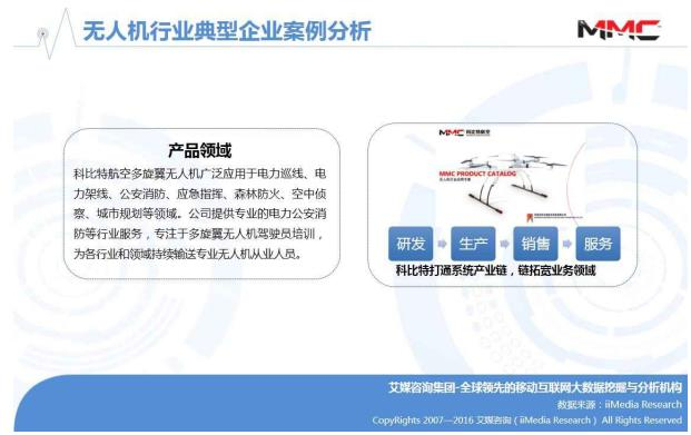 艾媒咨询分析师认为,在寡头垄断的无人机行业中,科比特在产业链整合和品牌认知度上有很大的上升动力,在注重专业技术和产品领域丰富的工业级领域是无人机行业盈利增长的重要方向。