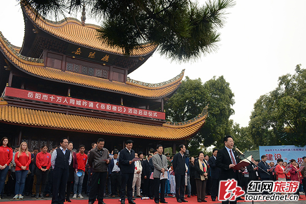 主会场岳阳楼前,500余人诵读《岳阳楼记》纪念《岳阳楼记》诞辰970周年。