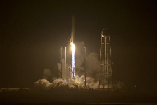 当地时间17日晚7时45分,“安塔瑞斯”号(Antares)运载火箭在弗吉尼亚州瓦勒普斯岛发射升空。(图片来源:路透社)