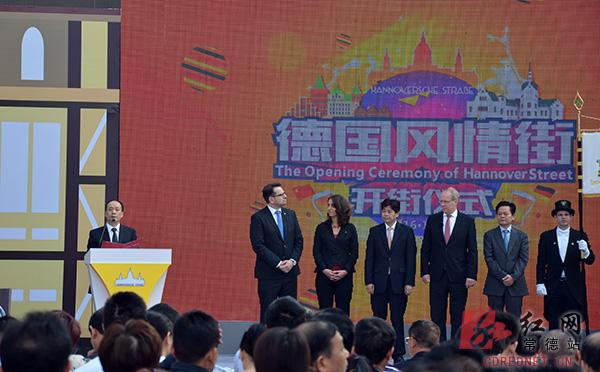 红网常德分站10月18日讯(分站记者 黄刚)德国咖啡、德国美食、德国建筑……这一切原汁原味的德国风味将在常德完美呈现。10月18日上午,常德市委书记王群,常德市委副书记、市长周德睿等领导与德国汉诺威市市长斯特凡•索斯托克共同见证了常德德国风情街正式开街。开街当天就吸引了成千上万的市民游客前来观光消费,这条“原装进口”的大街成为了市民的新宠。