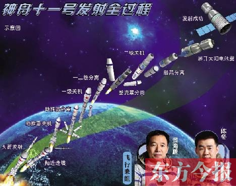 ▶昨日上午7时30分,搭载神舟十一号载人飞船的长征二号F遥十一运载火箭,在酒泉卫星发射中心点火发射,约575秒后,神舟十一号载人飞船与火箭成功分离,进入预定轨道,顺利将景海鹏、陈冬两名航天员送入太空,两位航天员开启33天的“太空之旅”,发射取得圆满成功。中共中央总书记、国家主席、中央军委主席习近平第一时间发来贺电。