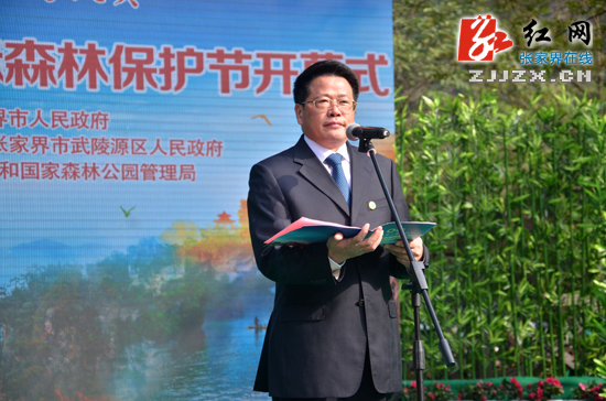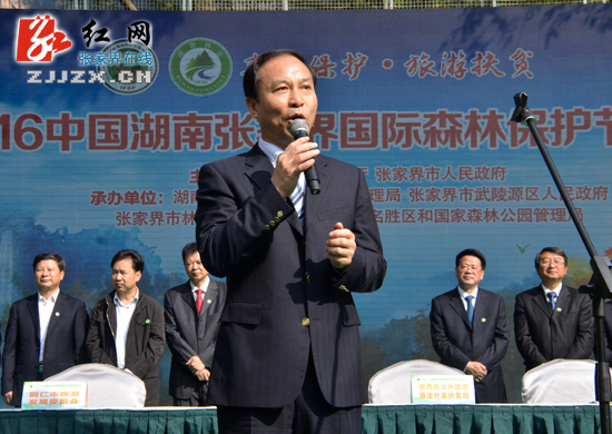 湖南省人大常委会副主任陈君文宣布2016中国湖南张家界国际森林保护节开幕