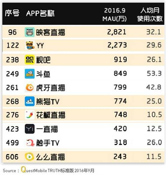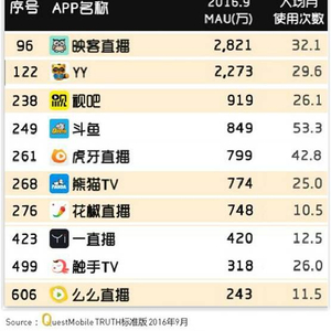 行业第一的地位与庞大的用户数量将给映客带来进入“直播+电商”领域的底气。日前,Quest Mobile发布的2016年秋季APP盘点榜单显示,9月份映客月活跃用户数(MAU)与日活跃用户数(DAU)均位列直播类APP第一名。数据显示,2015年5月映客直播APP正式上线,仅用4个月时间,注册用户就超过1000万,上线14个月后,注册用户突破1.3亿,日活跃用户超过1500万。
