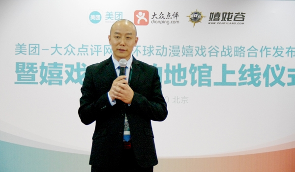 美团点评与环球动漫嬉戏谷战略合作发布会暨嬉戏谷目的地馆上线仪式现场。