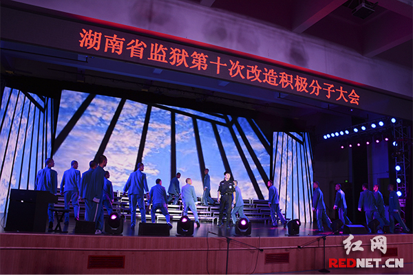 28日,湖南省监狱第十次改造积极分子大会上,服刑人员文艺演出。