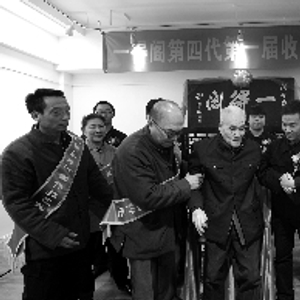 现场共有3位制墨大师收徒弟,都是第三代传人,共收9位年轻人为徒弟。在递交拜师帖、鞠躬敬茶后,师徒一起向“一得阁”老匾宣誓。宣誓后,在文房四宝协会的见证下,师徒均在拜师帖上签字,从此“一得阁”有了第四代传人。“一得阁”第二代传人、公私合营后首任厂长张英勤见证了这一刻,90多岁的老人眼中泪花闪闪。