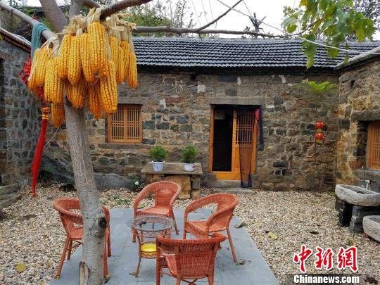 推开泰山脚下岱岳区道朗镇里峪村A-105号民居的木门,一座漂亮四合院呈现在眼前:院中一棵核桃树叶片稀疏,秋天的玉米棒子高高挂在树杈上,树下4把藤椅围着一个茶几。 邱江波 摄