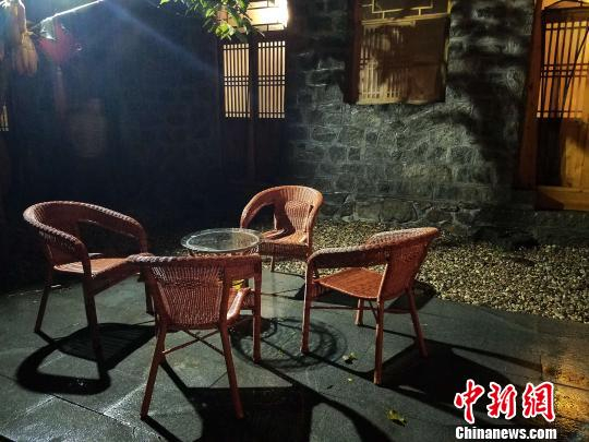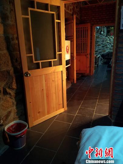 依山石而建的客房,木门和窗棂古朴,屋内无线网络、有线电视、空调、淋浴等设施一应俱全,还有麻将等娱乐用具。 邱江波 摄