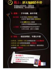 另外,白条还提供了200亿元提额包,白条用户将有机会在双11期间参加活动,获得临时提额,每位用户最高可提额8888元。并且,打“白条”在京东商城购物,订单金额随机立减,最高立减999元。即日起至11月8日,上京东金融APP玩“打爆提款机抢钱大作战”游戏,还有机会抢到1111元白条券,打“白条”购物直接减免现金。